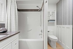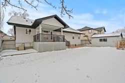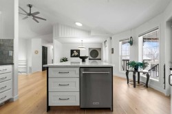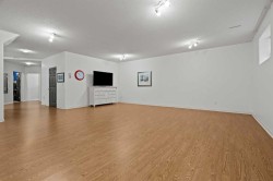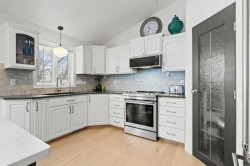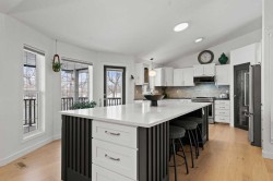 This MOVE IN READY HOME has been thoughtfully updated with features that focus on function in designing this ELEGANT MAKEOVER. A freshly painted front exterior and cozy covered front verandah speak to the classic curb appeal that sets this home apart in a league of it's own. Vaulted ceilings soaring above banks of windows that capture the natural light highlight the open floor plan that flows seamlessly... inviting larger family gatherings or intimate get togethers. A neutral paint palette offsets the gorgeous new engineered hardwood flooring - trimmed with high profile baseboards on the main floor. Masterfully crafted is the focal point of the main floor - a stunning island addition that isn't just an amazing storage and dining area.. it's the hub of this gorgeous family home. Custom designed wood details trim the island and complement the feature walls located in several areas of the house. A massive quartz slab accentuates the grandness of the island and showcases the sleek quartz topped cabinetry at the rear of the kitchen. A refreshed stone tiled backsplash complements the Stainless Steel appliances. Banks of drawers have been added for convenient storage. A spacious Living Room with a re-faced gas fireplace is offset from the kitchen for entertaining. An open-ended dining area boasts enough room for a larger table and a servery/coffee bar has been added for your convenience. The primary suite tucked away at the end of the hall delivers privacy and solitude and features custom wall detailing, a walk in closet and a lovely updated 5 pc ensuite bath complete with a jetted soaker tub and separate shower. Main floor laundry and a 4 pc main bath complete the main level. The bathrooms showcase new quartz topped vanities, tile backsplash and new sinks and taps. Ascending to the loft you are greeted by a spacious room that can be anything you need. Vaulted ceilings, lots of windows and sky lights to brighten the room all day, easy care engineered hardwood flooring... easy to add an area rug for a TV get away/bedroom or perfect as is for a crafters room. The four piece main bath is at the bottom of the stairs to accommodate a bedroom in the loft area. The lower level has a 4 pc bath, two additional bedrooms and plenty of room to add more with legal egress windows and 9 ft ceilings already in place. In floor heat keeps this level cozy in the winter months and the AC keeps the rest of the house cool in the summertime. A massive open recreation area in the lower level will fit your pool table and gaming desires to create a family sized entertainment area. The oversized 24'11"x 24'11" insulated and drywalled garage has in floor heat, and a 220 V power source. In ground sprinklers, a man sized garden shed with power, perennial beds laid with rocks that flank the perimeter and front grounds, and covered front and rear porches to satisfy your outdoor enjoyment complement the mature landscaping. This home is a dream to show! Call today!