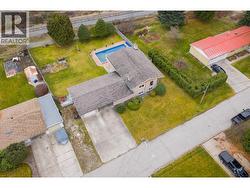 Custom family home situated on a massive .30 acre city lot in one of Castlegar's most desirable areas. This gorgeous 3-level split is an ideal family home so much so that it is on only its second owner. A home that was truly designed to focus on the family. The living areas are large and ideal for groups to congregate. The tastefully updated kitchen flows seamlessly to a large dining room and huge living room. Wall to wall floor to ceiling windows, bring the outside in and put the focus on the incredible views and the outdoor entertaining area complete with inground pool. Perhaps the focal point of the entire main floor is the beautiful beamed and vaulted cedar ceilings. Other features include: hardwood floors, two stunning gas fireplaces, many new windows, high efficiency furnace with AC, central vac, inground sprinlers and loads of storage. The den could easily be converted into a 5th bedroom. Then of course, there is the outdoor area. Watch the kids swim from the coloured concrete deckside or the newly finished and massive 10x28 deck! The fully fenced back yard still offers plenty of grass space for kids to run around, pets to roam or games to play all the while enjoying some of the most stunning views of our valley. The lot is 100% useable and almost square which adds rare lot width. The garage, carport and plenty of extra parking ensure everything has its space. Conveniently located close to schools and the rec centre and only minutes to Trail. (id:27)