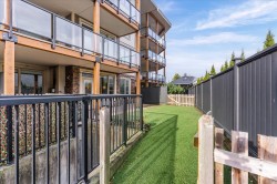 This two bedroom plus den residence sits in the sought after, upscale community of Englewood Courtyard. No detail was overlooked, featuring quartz countertops, stainless steel appliances, and a floor to ceiling stone fireplace in the living room. A standout feature of this ground level home is the spacious, turfed and fenced yard, offering seamless indoor/outdoor living with a patio and abundant natural light. Two storage lockers are included, one across the hall and another located in front of the underground parking stall. One small dog up to 18" is permitted, or a cat. The lease fee is $151.14 per month and HOA fees are $397.58 monthly. The building includes a car wash, woodworking shop, and a highly active community clubhouse for resident enjoyment. Come see it for yourself. Today!!!