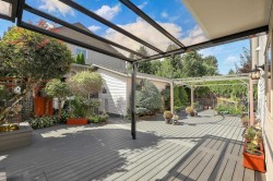 RENOVATED Ranch-style house on freehold 8,320 sq ft lot with RV PARKING back access & oversize detached workshop. Extensive upgrades in perfect layout for relax or kids to play: designer kitchen cabinets, granite counters, engineered hardwood flooring, ‘safe step’ walk-in tub in bathroom, new water pipes; PRIVATE BACK YARD: new metal fence + new METAL roof in year 2024 w/transferable warranty; a massive covered patio, full “Duradeck” surrounds and a hot tub, garden beds beside an oversize detached workshop-for hobbies, storage, or mortgage helper. The zoning allows 2nd kitchen (existing plumbing, a separate entrance available). This home has great flexibility and can easily be converted to accommodate an extra bedroom, as well as be wheelchair accessible both indoors and out.