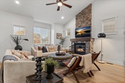 Vaulted ceilings, modern finishes, and a private backyard — this 5 bed, 3 bath Promontory home has it all. Complete with mountain views, this family-friendly residence offers space, style and flexibility. The bright, open-concept kitchen features stainless steel appliances, a large island and seamless flow into a stunning living room with vaulted ceilings and a stone-accented gas fireplace. Step outside to your fully fenced, tree-lined yard with hot tub - relax enjoy! Upstairs, three spacious bedrooms include a luxurious primary suite with a walk-in closet, double vanity and walk-in shower. The lower level has a separate entrance, office and 2 bedrooms plus rough-ins to create a 1 bedroom suite — perfect for guests or extra income potential.