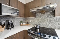 "CHARLAND" by LEDINGHAM MCALLISTER! A stunning 1-bedroom + den/home office with a spacious 232sf private entertaining patio—perfect for summer BBQs, relaxing evenings, or hosting guests. With direct lane access for extra parking, convenience is at your doorstep. open-concept layout with a generous living/dining space, laminate flooring throughout, in-suite laundry, and high-end finishes, including stainless steel appliances, quartz countertops, tile backsplash, and soft-close cabinetry. Amenities include secured underground parking, a storage locker, an exercise room, bike storage, and common rooftop terrace with breathtaking views. Located in Austin Heights, you're just steps from transit, shopping, dining, Blue Mountain Park & Van Golf Club.
