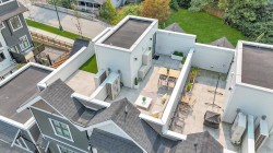 Discover this beautiful 2-bedroom, 2-bathroom townhome featuring a massive rooftop terrace and a fenced front patio perfect for entertaining or relaxing outdoors. The open-concept layout is elevated by contemporary designs and thoughtful upgrades, including the large kitchen with quartz countertops and backsplash and Fisher & Paykel appliances, Air Conditioning, sleek laminate flooring throughout, custom closet organizers, and smart home features for modern living. Ideally located just steps from a 55,000 sq. ft. YMCA, retail plazas, and everyday conveniences. This home comes with 2 underground parking stalls with EV charger and a secure storage locker. Open house 2-4pm on Sun, Dec 21.