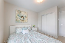 Perfectly located in the heart of Burquitlam, this well-maintained townhome is steps from the Skytrain, YMCA, parks, grocery stores, and shopping. All levels of schools, from elementary to SFU, are nearby. The open layout on the main features a modern kitchen with expansive island, S/S appliances, quartz countertops and plenty of cabinets for storage. The covered balcony is great for morning coffee or afternoon tea. Upstairs, you'll find generous-sized master bedroom with 3pc ensuite, his and hers closets and a built-in makeup station. The 2nd bedroom also offers ample space and comfort. Poised between the vibrancy of shopping/facilities and the serenity of surrounding parks, this home is an epitome of modern urban life in perfect balance. 1 Parking and 1 Locker included.