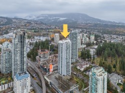 Welcome to Obelisk! This stunning 971 sq.ft. southwest-facing corner unit showcases sweeping, unobstructed views of SFU Mountain and Coquitlam Centre. Peaceful exposure, well away from SkyTrain noise and nearby development. Bright, airy layout with 2 bedrooms, a versatile den (easily turned into 3rd bedroom) & 2 full bathrooms. Features an open living/dining area, electric fireplace, updated 12mm laminate flooring, and fresh paint. Exceptional walkable location near SkyTrain, Coquitlam Centre, Henderson Mall, Library, West Coast Express, Douglas College, Pinetree Secondary, Glen Elementary, Lafarge Lake, and the Aquatic Centre. Amenities include gym, dry sauna, party lounge, bike storage, EV charging, and guest parking. Open house 12-1:30pm Dec 21
