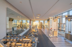 Welcome to M3 by Cressey, Coquitlam's tallest and most sought-after tower. This 2bed/2bath home also includes a spacious den with a large window, easily used as a third bedroom. The southwest-facing corner layout, 9' ceilings, floor-to-ceiling windows, air conditioning, and an efficient floorplan designed for modern living. The signature CresseyKitchen is equipped with Blomberg & Fulgor Milano appliances, double refrigerators, and a wine cooler. Enjoy sweeping, unobstructed views from every room. The primary suite features a spa-inspired ensuite with radiant heated flooring. Exclusive access to the Summit Club on the 47th & 48th floors, offering 9,000 SF of world-class amenities including gym, lounge and entertainment spaces. Just steps to Coquitlam Centre, SkyTrain, Lafarge Lake and more.