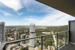Clarke & Como by Marcon - Court Ordered Sale - Outstanding South-West sweeping views from the 43rd floor. Surrey City, Fraser River, New Westminster, Burnaby Metro-Town and Downtown Vancouver city views from this split 2 bedroom, 2 full bathroom, plus den boasting 850 sq. ft. with full air conditioning. Dual exterior decks featuring 260 sq ft, one off master bedroom with the other off living room. New laminate flooring throughout foyer, kitchen, dining and living room. Unit condition is average at best. Building facilities are top notch featuring 20,000 sq. ft. of amenities including Sky Lounge, guest suites, B- court, sauna, music room, yoga studio, karaoke room and full service concierge. Located right across the street from Evergreen Burquitlam station. Open Sunday Oct 19 2-4pm