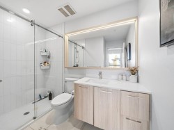 Penthouse living with style. Welcome to your private sanctuary in the sky! This stunning 2 bedroom 2 bath penthouse condo boasts 774 square feet of thoughtfully designed living space, soaring high ceilings, and an abundance of natural light that pours in through expansive windows. Perched on the top floor, this home offers a bright and airy open-concept layout, perfect for both relaxing and entertaining. The spacious living and dining area seamlessly connects to a sleek, modern kitchen,creating a natural flow throughout. Tall ceilings amplify the sense of space, while stylish finishes provide a contemporary yet comfortable ambiance. The primary suite features ample closet space and a private ensuite, while the second bedroom offers flexibility. EV charging accessible, close to skytrain.