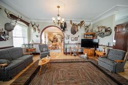 Dreaming about owning the most iconic property in Cranbrook? Look no further! This stunning 1910 Rancher home has an amazing history and is completely updated with the finest finishes and workmanship! The main level spans 3,324 square feet of living space with 10' ceilings, cherrywood custom trim, chair rails, moldings, and cabinets throughout. The main level homes an open concept floor plan with two master suites, a 3rd bedroom, 3 bathrooms including the spacious ensuite with laundry, formal front room, living room, dining, two kitchens one being a summer kitchen off of the sunroom, and a dining nook. The 2,670 square foot basement consists of a suite with full kitchen, living room, den, laundry, and a massive workroom. The timeless exterior is finished in brick and composite shakes and is wrapped with an elegant 1,000 square foot covered patio! The outbuildings include an attached double garage with basement entry, detached single garage, storage area/workshop, BBQ gazebo, and green house. This stunning property has been meticulously maintained with underground sprinklers, custom black metal fencing, beautiful gardens, and tons of green space. Everything you could desire in a property with endless character! Book a showing today! You have the opportunity to own a piece of Cranbrook's history.