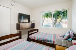 Welcome to Emerald Court – a bright, spacious, and well-maintained 1,209 sq ft end-unit rancher townhouse in a family- and pet-friendly complex. This 3-bedroom, 2-bath home includes a den/storage room, in-suite laundry, fresh paint, newer hot water tank, double-pane windows, and updated roof. The primary bedroom features a walk-in closet, 2-piece ensuite, and private entrance leading to your own patio and garden. Rentals allowed. 2 pets permitted with no size restrictions. Enjoy on-site tennis/sports court and a fantastic location just steps to parks, schools, playgrounds, and the vibrant Scott Road corridor with shopping, transit, and amenities. Easy access to Hwy 91 and Hwy 17 makes commuting simple. Ideal for families, downsizers, or investors seeking convenience and comfort in a centra