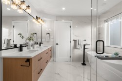 BRAND NEW 3-bedroom and Flex room, 2,126 sq. ft. 1/2 DUPLEX plus a BONUS detached 1-bedroom GARDEN SUITE! This thoughtfully designed home features an inviting open-concept layout with a bright living room with fireplace on beautiful feature wall. Dining area, and a spacious kitchen boasting an island, sleek quartz countertops, and premium finishes. Enjoy the durability of engineered hardwood floors, stylish designer lighting, and the convenience of a built-in vacuum, HRV system, and AC. The detached 2-car garage includes rough-in for EV charging. Nestled in a peaceful neighborhood backing onto farmland. Garden suite would be great for extended family or mortgage helper. This home offers easy access to Ladner Elementary School (French immersion), high school, and parks. OPEN SUNDAY 2-4