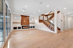 This stunning property offers a perfect blend of comfort and elegance, ideal for modern family living and a bonus mortgage helper if wanted. The spacious family room features bi-fold doors opening to a covered patio with a gas hookup, perfect for entertaining. The gourmet kitchen boasts Fisher Paykel appliances, a gas cooktop with a pot filler, and a walk-in pantry. The main floor also includes a guest bedroom and bathroom. The primary bed features a large walk-in closet and a spa-like ensuite with dual vanity, steam shower, and soaker tub. Upstairs, enjoy a spacious balcony with a gas hookup and water line. The third floor has a huge rec room with vaulted ceilings and an additional full bath. Includes A/C, HRV, radiant in-floor heating, and more.
