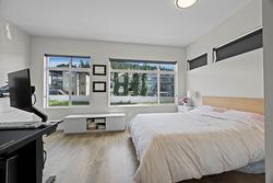 Welcome to this modern and stylish 3-storey end unit townhouse located in the highly sought-after neighbourhood of Juniper Ridge. Built in 2022, this beautifully designed home features 3 bedrooms, 2 full bathrooms, and 2 half baths, offering a spacious and functional layout perfect for families or professionals. The entry-level includes a bright bedroom or ideal home office, a convenient half bath, a mudroom, and access to the oversized single garage, which is equipped with EV charging . On the second level, you'll find a contemporary open-concept kitchen with quartz counters, dining, and living area with large windows that fill the space with natural light, along with access to a private balcony perfect for relaxing or entertaining. The top floor features two generous bedrooms, two full bathrooms including a primary ensuite, and a laundry area for added convenience. Located in a quiet, family-friendly community surrounded by trails, and parks, this move-in-ready home combines modern living with the natural beauty of Juniper Ridge. Call me today to schedule your viewing! All measurements are approximate and to be verified by the Buyer.