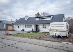 Welcome to this spacious 5-bedroom entry-level home in a prime location near schools, transit, and the Kamloops Bike Ranch. The upper level features a loft-style layout with vaulted ceilings, peak-roof windows that flood the space with natural light, a large den/office area, and a primary suite with a 3-piece ensuite boasting heated floors and a tiled shower with heated bench. The main floor offers a bright open-concept kitchen, dining, and living area with a cozy wood-burning fireplace. The kitchen boasts a gas range, and a large peninsula with bar seating and access to a generous laundry room with storage that leads to the side yard. On the main floor you will find 3 more bedrooms and a 4 pce bathroom with heated floors. Off the kitchen, step onto the outdoor deck overlooking the private backyard oasis complete with an inground saltwater pool, gazebo, grassed area, storage shed and landscaped gardens. Additional highlights include a stamped concrete driveway with RV parking, repoured garage flooring, natural gas BBQ hookup, underground sprinklers, irrigated garden beds, a crawl space and new side fencing—all just a short walk to the elementary school, dog park, and kids playground. All meas approx.