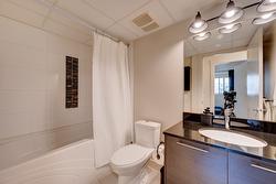 This 2 bedroom plus den apartment on the top floor is in fantasic condition and shows like new. The layout is open and has a great outdoor space . The home has lovely finishings with Corian counters throughout the kitchen and both bathrooms. The main bedroom has access to the 4 pc ensuite, and the 2nd bedroom with modern style barn door access. There is a second bathroom as well as a den to usa as office or extra storage and includes the stackable washer and dryer. Forced air heating and cooling as well as hot water is included in the HOA fees. The building is secure with an underground parking spot and a storage locker included. Pets and rentals are allowed in this Building.