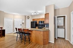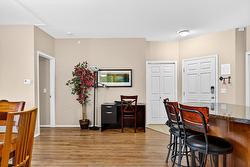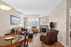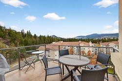 Welcome to Pinnacle Pointe! Spacious and rarely available top floor three bedroom two bath corner unit offering 1,277 sq. ft. of well planned living space. This bright home features an open concept kitchen with upgraded cabinetry, granite countertops, and an eat in bar, along with a cozy corner fireplace, central heating and cooling that is included in the strata fees, and gorgeous mountain views throughout. The primary bedroom includes its own ensuite, and all three bedrooms are thoughtfully separated by the large great room layout. Enjoy an expansive deck with sweeping views, ideal for relaxing or entertaining. The unit comes fully furnished, complete with all appliances, furnishings, accessories, and a convenient storage room, making it completely turnkey. Pinnacle Pointe sits on two championship golf courses, just minutes from UBCO which makes it perfect for students, and only moments from the Kelowna International Airport. Residents enjoy a pool, hot tub, fitness centre, and secure underground parking. A great investment property or an excellent choice for a first time buyer.