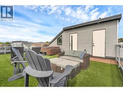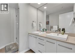 Welcome to Skyview Terraces, where form and function blend perfectly with upscale design and finishings, away from the hustle and bustle of downtown, but conveniently located within a short bike ride to all that downtown Kelowna has to offer. This end unit is located within a quiet location in the complex, near to visitor parking, and has an array of extra windows for added natural light. From the front door you are welcomed to a warm and inviting foyer, with access to the ground level bedroom/office and double car garage. Up from here you will find the inside entertainment level, with designer two tone kitchen including gas stove, cabinet space galore, light and bright living space, and the guest bath/laundry room, complete with newer Samsung washer and dryer. On the next floor are three well sized bedrooms, including the primary with 4 piece ensuite including heated floors and heated towel rack. The upper most level is the real focal point of this entire property, with the roof top deck, including synthetic lawn, a hot tub, and natural gas bib for your bbq; this is the space to soak in the sun and entertain your friends and family on a golden Kelowna summer night. The strata allows 1 dog or 1 cat and a minimum 3 month rental. Heating and cooling is through Geothermal, and there is newly installed hot water on demand unit. (id:27)