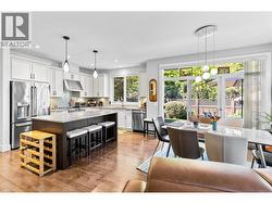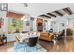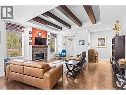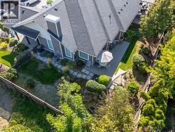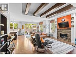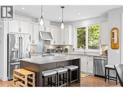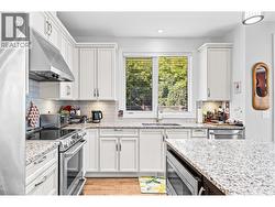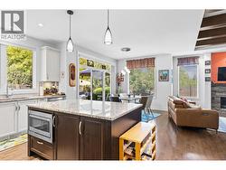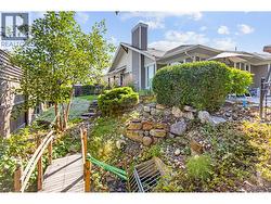 Welcome to Gablecraft in the Mission! This beautiful corner townhome offers a rare combination of privacy, style, and functionality in one of Kelowna’s most sought-after complexes. With mature landscaping, and timeless curb appeal including stone accents, tiled terrace, and a charming front gate, this home stands out from the rest. Inside, you’ll find a thoughtful two-bedroom, two-bathroom layout with bedrooms set on opposite sides of the entry hall for added privacy. Soaring ceilings and oversized windows fill the home with natural light, while quality finishes like granite counters, custom tile work, and double sinks in the primary ensuite provide a touch of luxury. The open-concept living and dining areas flow seamlessly into a chef-inspired kitchen featuring a large island, GE stainless steel appliances, soft-close cabinetry, and ample workspace, perfect for both everyday living and entertaining. A gas fireplace, upgraded ceiling beams, and sliding glass doors to the back patio with views of the southeast hills add warmth and character. Additional features include a spacious double garage, a convenient laundry room just off the kitchen, and a versatile flex area that adapts to your lifestyle. Fully fenced private yard with concrete patio area. (id:27)