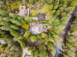 A truly rare offering — over an acre in the city with the privacy of an executive gated estate, just minutes from Meadowridge School. Enjoy private river access, a natural swimming pool, hot tub, and wood-fired pizza oven within a manicured, irrigated, fenced outdoor oasis. It feels like you have no neighbours, yet remains close to shopping, transit, and amenities. With 5,300+ sq. ft., this custom home features 6 bedrooms, 7 bathrooms, 4 large bedrooms upstairs. 5-car garage features a 550 sq. ft. loft with its own fireplace, ideal for the in-laws, working from home, or extra recreation space. RV parking, double driveway, and parking for 16+ cars. A one-of-a-kind home unlike anything else.