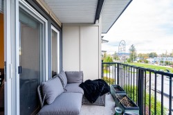 EDGE ON EDGE - Immaculate South-East facing, bright 4th floor 1 BED+PLUS DEN /1 Bath suite in the popular Edge on Edge built by Maclean Homes! Open concept floor plan features 8' ceilings, granite counters, undermount sinks, kitchen w/shaker cabinets & S/S appliances. Large master with walkin closet & cheater ensuite. Front loading in-suite laundry & large den/office space. Covered deck with street parking all around, secure underground parking, 2 pets & rentals allowed! Steps to Shopping, Transit, Restaurants, Rec Center, gyms and Schools! Call today to book your showing!