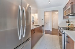 Stylish, spacious & steps from everything! This bright 2 bedroom, 2 bathroom corner unit shines with recent renos to the kitchen & bathrooms. New quartz counters, backsplash, sinks, lighting, paint & hardware. Sleek new appliances (stove/micro 2024, fridge/W&D 2025). Bedrooms are thoughtfully placed on opposite sides for privacy. Screened windows/balcony door for comfort. Brand new balcony membrane with pro-active Strata. Leave the car in one of your 2 side-by-side parking stalls. SkyTrain is just a 3-minute walk & the West Coast Express gets you to DT Vancouver only in 25 min. Stroll to Rocky Point Park, Shoreline Trail, Brewer’s Row, shops & dining. Amenities include a gym, event space & playground. Urban convenience meets Port Moody’s vibrant outdoor lifestyle!