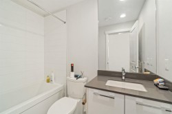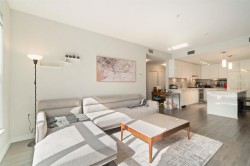 Welcome to Trafalgar Square by Polygon. This spacious 930 sqft 2-bedroom + open den home offers a thoughtfully designed layout, perfect for comfortable everyday living. The open den is ideal as a home office, reading nook, or extra storage space to suit your lifestyle needs. Enjoy 9’ ceilings, air conditioning, and a private gated patio that seamlessly connects indoor and outdoor living. The stylish kitchen features quartz countertops, stainless steel appliances, and plenty of cabinetry for storage. One Parking Stall