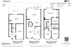 Rare find!!! Nearly 2,000 sq.ft. 3-level townhouse backing onto a tranquil greenbelt. The entry level opens to a fenced backyard and a large flex/rec room—ideal as a home office, gym, or 4th bedroom. Bright, airy main floor with a gas fireplace and a sunny sundeck facing trees for exceptional privacy. Fully renovated kitchen, refreshed bedrooms, and new light fixtures. Upstairs, the primary retreat offers dual sinks, a soaker tub, and a separate shower. $100K+ in upgrades: laminate flooring throughout; ~4-year-new appliances, furnace, and boiler. Ample in-home storage. Walk to Kennedy Trail Elementary; minutes to shopping, restaurants, theatres, and transit, with quick access to major routes. A refined blend of space, privacy, and convenience—Move-in Ready. OH CANCELED THIS WEEKEND