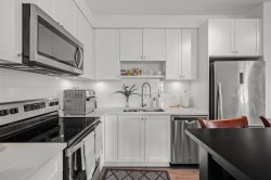 Welcome to King’s Landing by Dawson & Sawyer! This bright corner unit offers 2 bedrooms, 2 bathrooms, and a spacious open-concept layout. The generously sized primary bedroom features a double-sink ensuite, while the sleek kitchen boasts quartz countertops, stainless steel appliances, and laminate flooring throughout. Includes 1 parking and 1 storage. Located on King George Blvd, a few steps to Costco, Superstore, restaurants, and easy transit routes. Enjoy stunning mountain views and experience modern living at its finest! Call now to book your appointment!