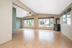 Welcome to Cherry Brook Park! This beautifully maintained 2 bed & den, 2 bath double-wide manufactured home offers 1,440 sqft of comfortable living on your own lot. Thoughtfully updated, it features a spacious ensuite w/ walk-in shower, cozy freestanding natural gas fireplace, newer windows, updated flooring, kitchen counters & backsplash, closet organizers, R/I vacuum, & a large openable kitchen skylight. Enjoy the detached workshop & expansive south-facing covered patio—perfect for relaxing or entertaining. With 2 parking spots right outside your door and proximity to Hwy 99, the US border, hospital, shopping, and White Rock Beach, convenience is at your doorstep. Adult-oriented 55+ community with low strata fees of $200/month.