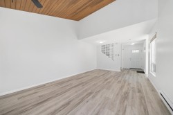Step inside this GORGEOUSLY updated 2 bed 1 bath 1,005sqft townhome w/MASSIVE backyard located in the desirable GREENSIDE ESTATES! Vaulted ceilings in the open concept living / dining room let the natural light pour in while the WOOD burning fireplace gives you the homey, cozy feeling. Updated kitchen w/TONS of storage, countertop space & Brand New Appliances! Newly installed laminate flooring, fresh paint throughout, Outdoor living is a 10/10 Huge Private yard & over 200 sq/ft of deck space, generous sized rooms, WIC in main bed,4 piece bath, new hot water tank(3 years)& recently renovated clubhouse W/GYM, pool & Basketball Court! Great amenities but still low strata fee of $383/month! Click "VIRTUAL TOUR" link for more info, photos, videos & 3D floorplan! OPEN HOUSE SAT NOV 15 12PM-2PM