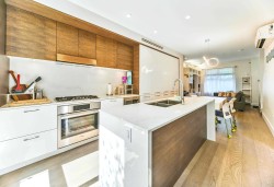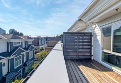 Elegant 3 Bed + Office, 2.5 Bath Corner Townhome featuring open living/dining with high ceilings, A/C, wood floors, and a chef’s kitchen with Liebherr & Bosch appliances. Enjoy a sunny south-facing patio, two bedrooms with ensuites, and a top-floor primary with spa ensuite, WIC, balcony & panoramic views. Lower level offers a large office, full laundry, and direct access to 2 parking with EV charger. Steps to Winona Park, Churchill catchment, shops & transit on Marine/Cambie.