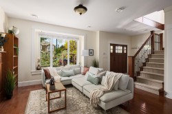 Welcome to this custom-built Craftsman-style home in the heart of Fraserhood, designed with families in mind. Built in 2010, the main floor features a formal living room with gas fireplace and pocket doors that open to a spacious dining area, family room, and kitchen. Enjoy beautiful wood detailing, natural light from abundant windows, and year-round comfort with A/C. Upstairs offers 3 generous bedrooms including a primary with walk-in closet and luxurious ensuite. Skylights brighten both baths. The basement includes a 2 bed legal suite with flexible layout. Outdoor living shines with a west-facing front yard, back deck, and lush yard. Steps to Grays Park. McBride and Tupper catchment.