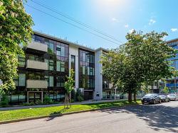 Welcome to The Wade—a sophisticated, 2021-built low-rise steel and concrete building that combines modern design with lasting quality. This top-floor corner unit offers over 750 sqft. of bright, thoughtfully designed living space with large windows & serene park views. Open-concept layout features a gourmet kitchen with quartz countertops, stainless steel appliances including a gas cooktop, two toned full-height modern cabinetry & large island with an eating bar—perfect for entertaining. Primary bedroom includes walk-in closet and ensuite with heated tile floor. Additional highlights include in-suite laundry, second full bathroom with heated tile floors, private balcony with a gas BBQ hookup and abundant natural light throughout. Enjoy access to a stunning rooftop terrace with sweeping city views plus your own garden plot and private peaceful courtyard. Well run strata welcomes 2 dogs (any size) with access to secure underground parking, separate storage locker & bike room.