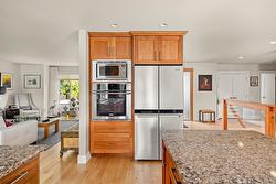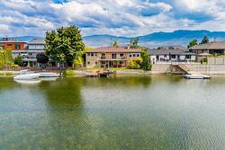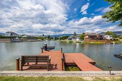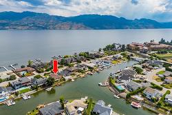 professionally renovated 3-bedroom walkout rancher offers over 3,600 sq. ft. of luxurious living space. The bright, open floor plan flows seamlessly from the gourmet kitchen, boasting a granite island, custom wood cabinetry, stainless steel appliances, and a gas range to the inviting living areas with maple hardwood floors. The main level features a sophisticated master suite, a private office, and an inspiring art studio. Downstairs, a spacious family room, and a convenient guest or in-law suite complete with its own laundry and private entrance provide ample flexibility. Enjoy modern amenities like a Navien instant hot water system. Heading outside, you are welcomed by captivating views of the canal waterway and the picturesque Mission Hill Winery bell tower. Outdoor entertaining is a dream with a covered patio, a charming timbered pergola, a main level deck, and a beautifully landscaped, east-facing front courtyard. And as expected with a property on the waterway, this home on prestigious Pritchard Drive offers a newer dock with 4000 lb electric boat lift for your private moorage. With an impressive front entry, a double garage, covered pergola carport, this is an unparalleled opportunity to embrace the best of Okanagan living. New roof.