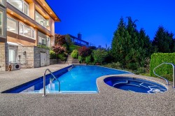 APPROXIMATELY $745,000.00 spent on meticulous renovations of this fabulous family home boasting a lovely view of DOWNTOWN/LIONSGATE/STANLEYPARK, flat driveway and oversized 3-car garage. Go to "DOCUMENTS" to see the LIST OF RENOVATIONS. MAIN FLOOR: stunning foyer and dining room with 18ft ceiling, spacious living room, fabulous gourmet kitchen, wok kitchen next to eating area and large family room overlooking the view. UPPER FLOOR: huge primary bedroom with large walk-in and en-suite with Jacuzzi tub, 3 spacious en-suited bedrooms, library/study area and laundry. LOWER FLOOR: fantastic rec-room with wet-bar, games room, both with sliding doors leading to large patio and beautifully tiled swimming pool and hot-tub, plus large media room, guest bedroom and full bathroom.