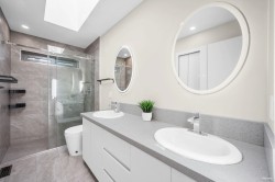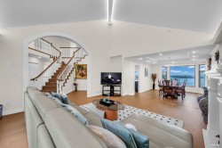 Fully renovated spectacular custom home with panoramic city & ocean views! This luxurious home, nestled on a quiet cul-de-sac. The formal living and dining rooms provide an elegant setting for entertaining, while the updated open kitchen, wok kitchen and adjoining family room flow seamlessly onto a huge covered deck, ideal for enjoying morning coffee or evening sunsets. Upstairs features a rare FIVE-BEDROOM layout with four ensuite bedrooms provides private retreats for all family members. The ground level includes an two-bedroom suite with its own kitchen and a walkout backyard captures ocean views, perfect for guests, in-laws, or long-term rental. Additional features include a comprehensive security system, two new independent forced-air heating systems, abundant storage & 2 car garage.