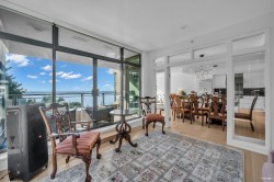 Exquisite south facing corner unit in the highly sought after STONECLIFF Cypress Park Estates over 2,000 sqft of thoughtfully renovated living space. Open plan layout features 9’ ceilings & sunlight pours through expansive floor-to-ceiling windows. Living room boasts panoramic ocean & city views. The chef’s kitchen equipped with a gas cooktop, KitchenAid stainless steel appliances, and a large center island. Adjacent, a cozy family room with fireplace provides a warm gathering space, and a covered terrace that extends the living area. The home has 3 bedrooms and 3 bathrooms, including two bedrooms with ensuite bathrooms for added comfort and privacy. A private two-car garage completes the property. Clubhouse amenities, including gym, meeting room & hot tub.