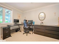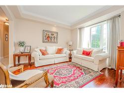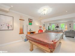 GRANDEUR 2-STOREY HOME WITH NEARLY 4,000 SQ FT OF FINISHED SPACE IN A PRIME LOCATION BACKING ONTO EP LAND! Nestled within the heart of the sought-after Painswick neighbourhood, this stunning home is within walking distance of multiple schools, parks, and trails. A short drive provides access to all amenities, including shopping, dining, a library, beaches, Highway 400 access, and public transit. The property backs onto EP land, offering exceptional privacy and a lush forest backdrop. Situated on a 50 x 163 ft pool-sized lot, the gorgeous backyard oasis features a deck, fire pit area, patio, and plenty of space for children and pets to play on the lush lawn. The majestic curb appeal is highlighted by an all-brick exterior, a covered double-door entryway with a balcony above, large windows, and well-maintained landscaping. Inside, the immaculate interior spans nearly 4,000 finished square feet and displays fine finishes throughout. The chef’s kitchen boasts white cabinetry with crown moulding, pot lights, a tiled backsplash, and built-in appliances. The great room features a gas fireplace, numerous windows, built-in shelving, and a cathedral ceiling. Formal dining and living rooms offer ample space, perfect for entertaining. The main floor also includes a convenient laundry room. Upstairs, three well-appointed bedrooms include a primary bedroom with a walk-in closet and a 5-piece ensuite featuring a soaker tub, dual vanity, and glass-walled shower. The second bedroom has its own 3-piece ensuite, while the third has access to the main 4-piece bathroom. The versatile loft space can be used as a home office or playroom. Your living space is extended in the walkout basement, offering in-law potential and a spacious recreation room, bedroom, and full bathroom. This #HomeToStay combines luxurious living with convenience and privacy in a prime location!