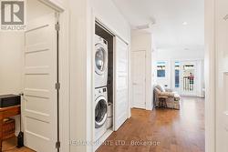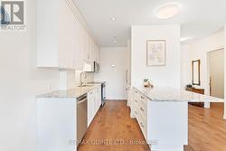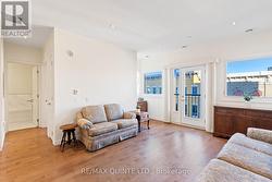 This stylish third-floor condo offers 1 bedroom plus a den and features tasteful upgrades throughout. Enjoy hardwood flooring, an extended kitchen island with extra seating, and a bright, open-concept living space. The Juliette balcony brings in plenty of natural light and offers a charming view overlooking downtown Belleville. This unit also includes in-suite laundry and one underground parking space. Conveniently located in Century Village with a rooftop patio, common room, and elevators all just steps from local shops, restaurants, and the farmers market in the heart of the city. (id:27)