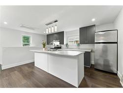 WOW! LARGER THAN IT LOOKS FOUR BEDROOM, TWO BATHROOM BUNGALOW IN A DESIRED WALKABLE NEIGHBOURHOOD. 1167 SQ FT OF FINISHED SPACE. MODERN DECOR THROUGHOUT FEATURING A LARGE ISLAND AS THE FOCAL POINT IN THE NEW KITCHEN, NEW SHIPLAP BATHROOM WITH WELL THOUGHT OUT UPGRADES. HARDWOOD FLOORS IN THE LIVING ROOM AND MAIN FLOOR BEDROOMS. MASTER BEDROOM INCLUDES A WALK IN CLOSET! EXTRA LIVING SPACE IN THE LOWER LEVEL WITH A REC ROOM, SECOND BATHROOM, AND FOURTH BEDROOM/OFFICE FOR A QUIET HOME WORK SPACE. NEW PRIVATE DECK OFF OF THE KITCHEN OVERLOOKS THE DEEP 165 FT YARD, YOU WILL LOVE THIS OUTDOOR SPACE. WALK TO SCHOOLS, PARKS, RESTAURANTS, AND SHOPPING.