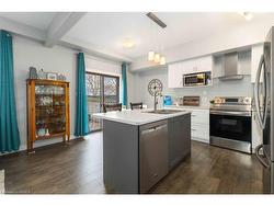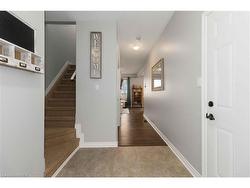 Welcome to the desirable Lynden Hills community!This updated 3-bedroom, 3-bathroom townhouse condo is ideal for first-time buyers or those looking to downsize. Enjoy maintenance-free living with no need to shovel snow or cut grass.The main floor was fully renovated in 2020 and showcases engineered hardwood flooring throughout, a stylish kitchen with new cabinetry, and a modern island with breakfast bar seating. Step through the patio doors to your new back deck (2024) and private fenced yard—perfect for summer BBQs and relaxing outdoors.Upstairs, the primary bedroom offers a private 3-piece ensuite with a glass shower, while two additional bedrooms and a 4-piece family bath complete the upper level. The lower level provides excellent potential for a future recreation space or home gym. Nothing to do but move in! New furnace (2025) and air conditioning (2022)Conveniently located near Highway 403, Highway 24, and all major shopping amenities, this home blends comfort, style, and convenience in one perfect package.