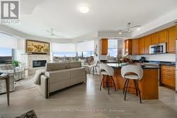The stunning panoramic views from all windows in this tastefully appointed condo allow a pleasing outlook of the 1000 Islands and parkland to the west and cityscapes and the many church spires to the north. The current owner replaced all flooring and redecorated throughout when purchased from the original owner. Enjoy tasteful luxury vinyl plank throughout and cushion tile flooring in the baths. This "designer look" condo is freshly painted throughout in neutral colours. You will never tire of summer days and evenings on your private 105 sq ft balcony watching ocean going ships, lakers, private yachts and endless riverfront activity. Meet fellow residents or friends at the in building restaurant or cafe. Enjoy a game of pool in the party room, keep fit exercising in the work out room or swimming in the heated indoor pool. An extensive waterfront deck expands across the perimeter of the building providing multiple sitting areas, outdoor shuffle board, wonderful for socializing. When you live at the "Tall Ships" you are not just buying a beautiful, contemporary home but also a great, carefree lifestyle. Book your showing soon. Seller can accommodate a quick closing. (id:7525)