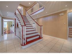 Former Model home occupied by loving original owners! Absolutely stunning home with In-law or Teenager's suite on a private side of the home with walk-in closet and full bath! Meticulously maintained Feng Shui oriented home with a Heated Sunroom and a Stunning staircase built to size in the home! You will be charmed by the elegance and charm of this home with extensive Crown molding, Hardwood, Wrought iron special designed mirrors & cabinetry, Extensive Granite & Marble as soon as you step into this home that just keeps going on and on. The home spans over 5,000 sqft of living space with 5 bedrooms, 3.5 bathrooms, amazing Sunroom with gas fireplace and heated marble flooring open to both sides of the yard with sliders, 4 bedrooms on second level with 3 full baths, Master bedroom with two Walk-in closets or make one into Nursery plus a Spa like ensuite with a Soaker tub, Glass shower, Heated towel bar, His & Hers sinks, marble heated floors; Fully finished basement with oversized L-shape Rec room with gas fireplace, Exercise room, extra pantry/wine cellar. The main floor has an elegant office with wood paneling, Formal dining room with a beautiful one piece special design mirror, Living room/working room for home business, Family room/Den with a cozy gas fireplace, modern Chef's kitchen with marble countertops with top of the line appliances! The yard is fully fenced, has mature trees and is full of beautiful perennials. The home was fully renovated in 2018-19 Kitchen, Basement, Sunroom, Mudroom, Spa Ensuite, Powerless Kinetico water softener with torking system, RO, Eaves Guard, All new potlights, All windows, Front door. Other updates include: Roof 2012, AC 2017, Central Vacuum, Furnace & Hot water heater Nov 2024, Gas hook up for BBQ. Double garage plus the interlock driveway can park 6 cars! Just minutes from 401, Shopping, Schools, Trails, This home is a rare find that offers a perfect blend of luxury and elegant living style in a family oriented neighborhood.