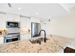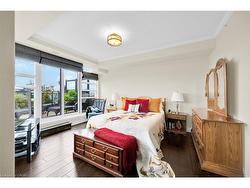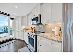 LUXURIOUS APARTMENT CONDO LOCATED IN GRIMSBY ON THE LAKE!! Spacious corner unit offering approximately 1500 sqft with floor to ceiling, wall to wall windows, providing spectacular views of the lake and Toronto skyline. Modern open concept design with spacious foyer, hardwood floors, crown mouldings and recessed lighting. 3 underground parking spaces. Gourmet kitchen, large island, abundant cabinetry, granite counters and stainless-steel appliances. Enjoy the two separate balconies plus the expansive terrace offering a great space for relaxation and taking in the Lake views. The elegant primary bedroom suite has 2 walk-in closets, luxurious ensuite bath with jetted tub and glass doors to the terrace. Second bedroom with full ensuite bath, walk-in closet. OTHER FEATURES INCLUDE: Newer secured building, 2.5 baths with granite counters, in-suite laundry with washer & dryer, central air, custom window treatments, hardwood floors, wine cooler, kitchen appliances. Condo amenities include party room, roof top lounge, workout facilities, meeting room, car wash station, private locker, ample visitor parking. Quality finishes throughout this unit. Steps to waterfront trail, beach, fine dining and shopping and less than 10 minutes to wineries. Carefree living at its best awaits you. A must see!