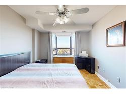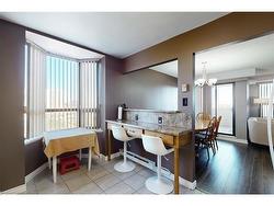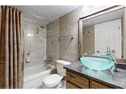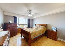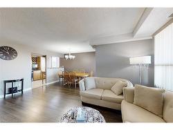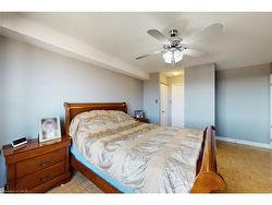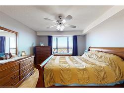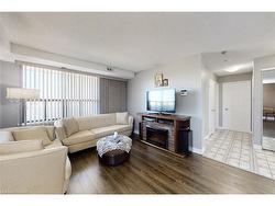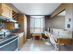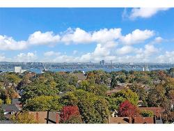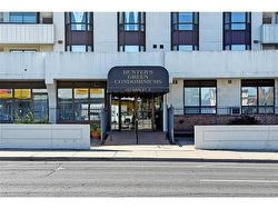 Welcometo the popular Hunter's Green Condominiums. Known for its bright and spacious units in Hamilton's central core. This lovely 2 bedroom 2 full bathroom suite offers 1,027 sqft of bright and comfortable living space, featuring an open-style kitchen with SS appliances, updated flooring in living and dining room and large bay windows. Spacious master bedroom with ensuite, complete with large windows that flood the room with natural light. The in-suite laundry, accompanied by ample storage space and exclusive underground parking with potential to possibly rent an additional spot ensures practicality and convenience. Breathtaking views of Lake Ontario and city skyline from your private corner balcony. Addition to the unit features, the building itself offers a party room, perfect for hosting gatherings with your family and friends. Perfectly situated in the Stinson neighbourhood, steps to grocery stores, shopping, hospital, transit, highways & mountain access, this is urban living at its finest.