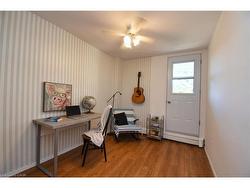Welcome to Parkview Terrace, offering wide open spaces, convenience and community. This bright and spacious condo has been freshly painted and offers stunning west-facing views over the Greenhill Park creek and trail. The two-storey layout of this apartment-style condo is perfect for families and features 3 upper bedrooms and a recently updated (2024) 4 piece bath. Enjoy an open and airy main floor with plenty of natural light. The kitchen has laundry hookups and laundry facilities are also available in the building. The living and dining area steps out to a large private balcony with views over this vibrant complex. Other features include a children's playground, two basketball courts, a community garden, pet-friendly amenities, bike storage, a party room, one underground parking space and a large storage locker. Just minutes from the Red Hill Valley Parkway for an easy commute and close to schools, parks, and shopping. With over 1100 sq ft on two floors backing onto lush green space and scenic trails, this home offers the perfect blend of urban living and natural beauty.