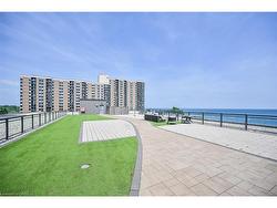 Welcome to "Waterfront Trails" --- Lakeside Living at Its Finest!Step into this immaculate 1-bedroom condo just steps from the lake. This bright, open-concept unit boasts floor-to-ceiling windows, modern laminate flooring, and an upgraded kitchen complete with quartz counters, a breakfast bar island, and premium stainless steel appliances.Enjoy the outdoors from your 63 sq. ft. private balcony, and appreciate the convenience of underground parking and a secure storage locker. High-end blackout blinds add comfort and privacy.This well-managed lifestyle building offers a host of amenities, including a party room, yoga studio, and an expansive rooftop terrace with comfortable seating and breathtaking lake views. The building also features eco-friendly geothermal heating and cooling, keeping your utility bills low.Located in a peaceful lakefront community, yet close to highways, shopping, and some of Ontario's best wineries, it's the perfect blend of serenity and accessibility.