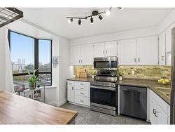 Welcome to Hunters Green Condominiums, located in the desirable Stinson neighborhood. This bright and spacious 2-bedroom, 2-bathroom corner suite offers over 1,000 sq. ft. of comfortable living space! Plus, a rare enclosed glass balconywith beautiful south/west exposure and escarpment views. Whether you're a first-time buyer or looking to downsize you'll appreciate the open-concept layout that seamlessly integrates the living, dining. and kitchen areas - perfect for entertaining. The beautifully updated kitchen features stainless steel appliances, live edge island, plenty of cabinetry, & a large bay window that fills the space with natural light. The generous primary bedroom includes an ensuite bath and double closet, while both bedrooms enjoy bright bay windows with lovely escarpment views. This suite also offers the convenience of in-suite laundry and a large storage pantry. Additional highlights include the underground parking space, ample visitor parking and numerous updates- new flooring (2021), freshly painted throughout (2021) & ensuite-bathroom upgrade (2025). Located within walking distance to parks, schools, grocery stores, and offering easy access to downtown, highways, and the mountain - this home truly combines comfort, convenience, and pride of ownership. RSA
