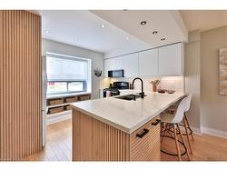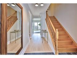 Welcome to this beautifully renovated and thoroughly updated 3-bedroom, 2-bath townhouse set in the heart of the vibrant community of Port Credit. Enjoy stylish finishes and modern appointments in the bright, open-concept main level which offers an inviting layout, highlighted by a stunning custom kitchen (2022) featuring bespoke cabinetry, under-cabinet lighting, quartz countertops, a zellige tile backsplash, island seating, stylish wood accents, and newer appliances including a 2023 fridge and microwave. Fresh paint, LED pot lights, new maple hardwood flooring, porcelain tile in the entry, and all-new doors and trim create a seamless modern feel. The spacious living area opens to a private rear garden, perfect for relaxing or entertaining, and is complemented by an adjoining dining area. A new exterior entry door adds a fresh, contemporary touch to the home’s façade.Upstairs, the home offers three generous bedrooms with hardwood flooring throughout and ample closet space. The fully renovated (2019) 4-piece main bath exudes elegance with marble tile flooring, pot lights, porcelain wall tile, a quartz-topped vanity, and a Toto toilet.The fully renovated (2025) lower level provides exceptional versatility with a spacious rec room ideal as an additional living area or potential bedroom. This level showcases vinyl plank stairs and flooring, new trim and baseboards, LED pot lights, and fresh paint. Completing the space is a beautifully renovated (2019) 3-piece bath offering an oversized glass framed shower, basketweave tile flooring, pot lights, custom vanity, and a Toto toilet. The utility room features a newer furnace & A/C (2021), laundry area, ample storage and convenient separate entrance from the garage.Just minutes from Port Credit village, the GO Train, major highways, top-rated schools, parks, Lake Ontario, and the waterfront trail, this home perfectly blends modern luxury with everyday convenience. Don’t miss this exceptional opportunity.