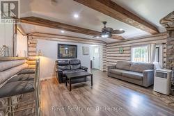 Here is your RARE opportunity to own a legal, turn-key, renovated Airbnb, right in the city near the shores of Lake Nipissing, in the heart of the summer and winter tourism scene and local amenities. Located on C7 zoning, this short-term rental is a log, 4-season, 2 bedroom home year - round home sitting on its own lot (not on water), with a manicured, private backyard featuring twinkle lights, a fire pit and on a private crescent with ample parking. Private and affordable retreat tucked away off Lakeshore Dr. on this small crescent close to Sunset Park, restaurants like Churchills, beaches and water access. ** This is a linked property.** (id:27)